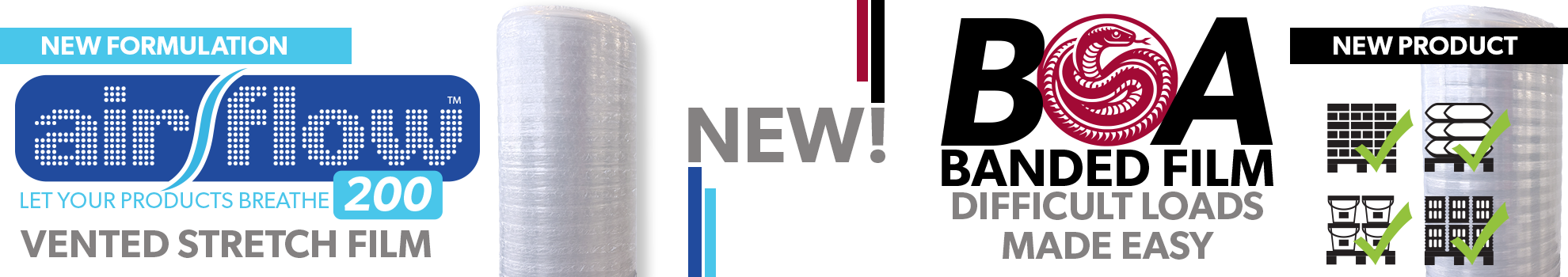 Our Value Added Brands include AIRFLOW® vented stretch film, PRECISIONRAP® ONYX, Onyxpole and XL ergonomic hand wrap systems, PRECISIONRAP® DK bio-assimilation stretch wrap, PANACEAWRAP® metal protection film, and Zerotape ergonomic tape delivery system with RPET tape made from 85% PCR (Post Consumer Recyclate).